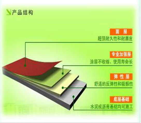 施工厚度:3.0-5.0mm 使用年限:8-10年 性能特點(diǎn):耐光照、耐磨、耐候性佳、附著力強(qiáng)、耐沖擊、富有彈性、能有效降低運(yùn)動(dòng)員的疲勞。 適用范圍:要求戶外曝曬耐久性強(qiáng)的運(yùn)動(dòng)場(chǎng)地面,耐紫外光照射不易分解或變黃,能長(zhǎng)期保持原有光澤及色澤,適用于各種室外球場(chǎng)及運(yùn)動(dòng)場(chǎng)地。