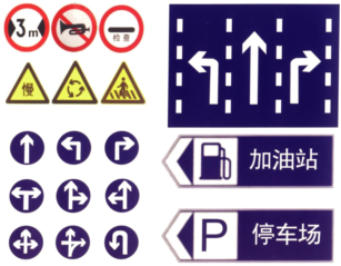 交通標(biāo)志是由圖形符號(hào)、文字、特定顏色及幾何形狀組成的標(biāo)牌,向車輛和行人傳遞警告、禁令、指示及指路等內(nèi)容的交通管理設(shè)施, 交通標(biāo)志分為主標(biāo)志(警告標(biāo)志、禁令標(biāo)志、指示標(biāo)志和指路標(biāo)志)輔助標(biāo)志以及其他標(biāo)志,交通標(biāo)志設(shè)置形式一般為柱式、懸臂式、門式和附著式標(biāo)志。