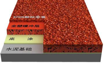 施工工藝: A.首先檢查基礎(chǔ)層的平整度,對(duì)凹凸部位進(jìn)行找平(如水泥砼基礎(chǔ)需酸洗)。 B.底膠鋪設(shè),鋪設(shè)底膠之前先將地基基礎(chǔ)清掃干凈,準(zhǔn)備好施工用的工具。 C.EPDM橡膠顆粒攤鋪:將橡膠顆粒同膠水參合均勻后進(jìn)行攤鋪壓實(shí)。 D.工藝線噴劃:按照現(xiàn)行的田徑場(chǎng)地設(shè)施標(biāo)準(zhǔn)準(zhǔn)確測(cè)量出工藝線的位置,然后用劃線漆噴刷。