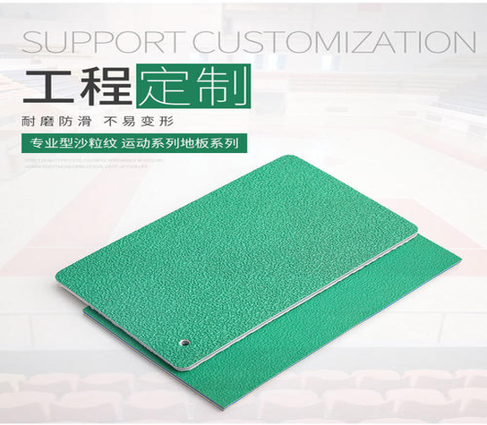 PVC運動地板:是采用聚氯乙烯材料專門為運動場地開發(fā)的一種運動地板,是以聚氯乙烯及其共聚樹脂為主要原料,加入填料、增塑劑、穩(wěn)定劑、著色劑等輔料,在片狀連續(xù)基材上,經(jīng)涂敷工藝、經(jīng)壓延、擠出、擠壓工藝生產(chǎn)而成。一般是由多層結(jié)構(gòu)疊壓而成,一般有耐磨層(含UV處理)、玻璃纖維層、彈性發(fā)泡層、基層等。PVC運動地板應(yīng)用非常廣泛,是奧運會等各項國際性比賽都指定PVC彈性運動地板。