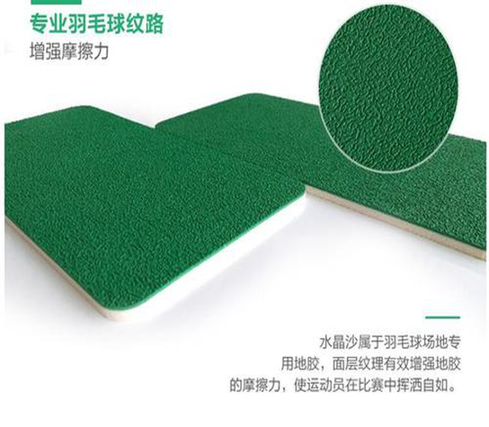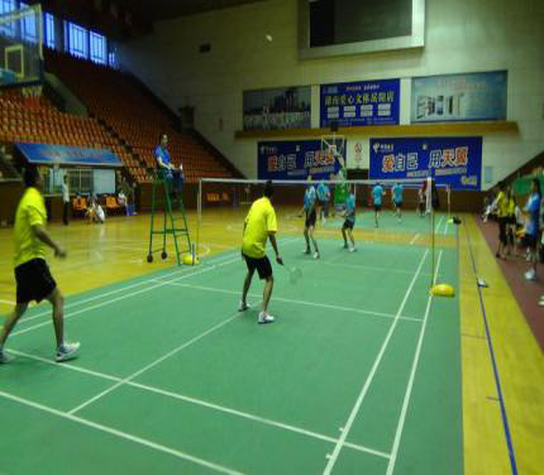 PVC運動地板:是采用聚氯乙烯材料專門為運動場地開發(fā)的一種運動地板,是以聚氯乙烯及其共聚樹脂為主要原料,加入填料、增塑劑、穩(wěn)定劑、著色劑等輔料,在片狀連續(xù)基材上,經(jīng)涂敷工藝、經(jīng)壓延、擠出、擠壓工藝生產(chǎn)而成。一般是由多層結(jié)構(gòu)疊壓而成,一般有耐磨層(含UV處理)、玻璃纖維層、彈性發(fā)泡層、基層等。PVC運動地板應(yīng)用非常廣泛,是奧運會等各項國際性比賽都指定PVC彈性運動地板。